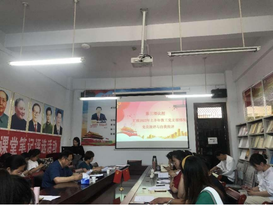 tyc7111cc太阳成集团教工党支部召开关于深刻汲取“7・20”特大暴雨灾害追责问责案件以案促改组织生活会及民主评议党员