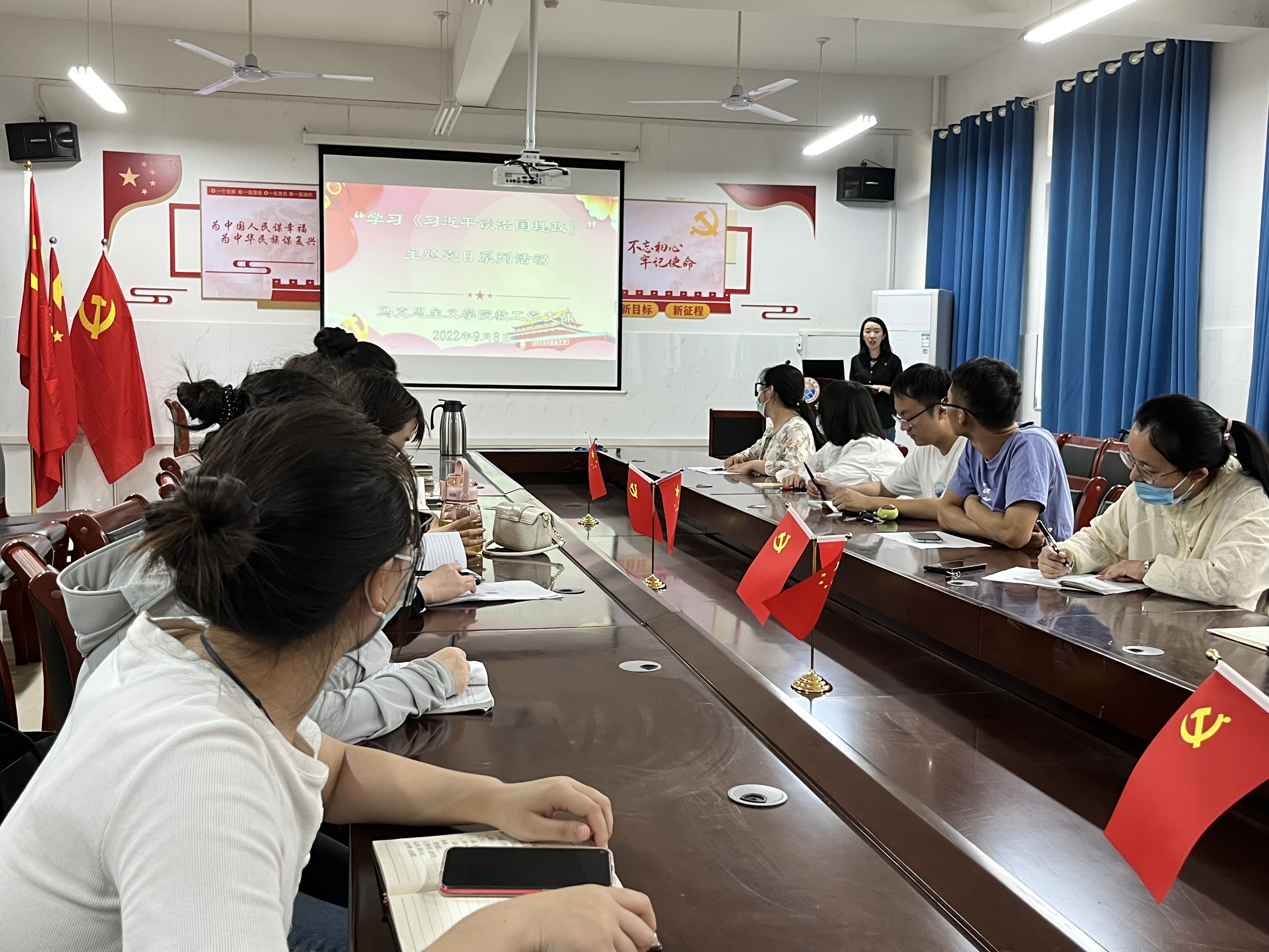 2022年9月8日下午4时,tyc7111cc太阳成集团教工党支部在东校区6号楼110会议室举行了“学习《习近平谈治国理政》”主题党日系列活动。参加活动的有tyc7111cc太阳成集团教工党员(包含预备党员)、入党积极分子。