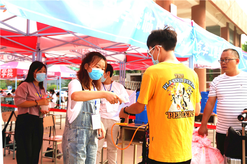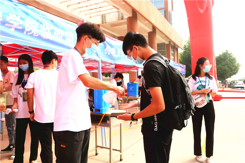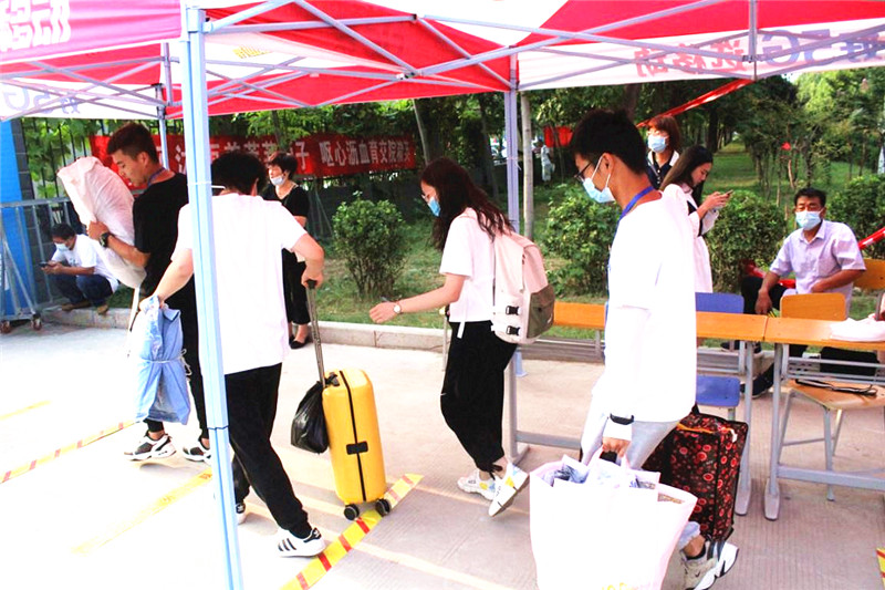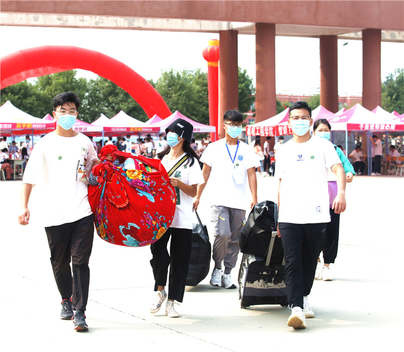迎新首日,20级新生有序排队消毒、测温进入校园,志愿者随时做好准备,指引新生熟悉报到流程、存放和搬运行李。学院在迎新期间使用专门车辆进行物品托运,减轻了新生行李搬运的压力,同时感受到了学长学姐们的热情服务。