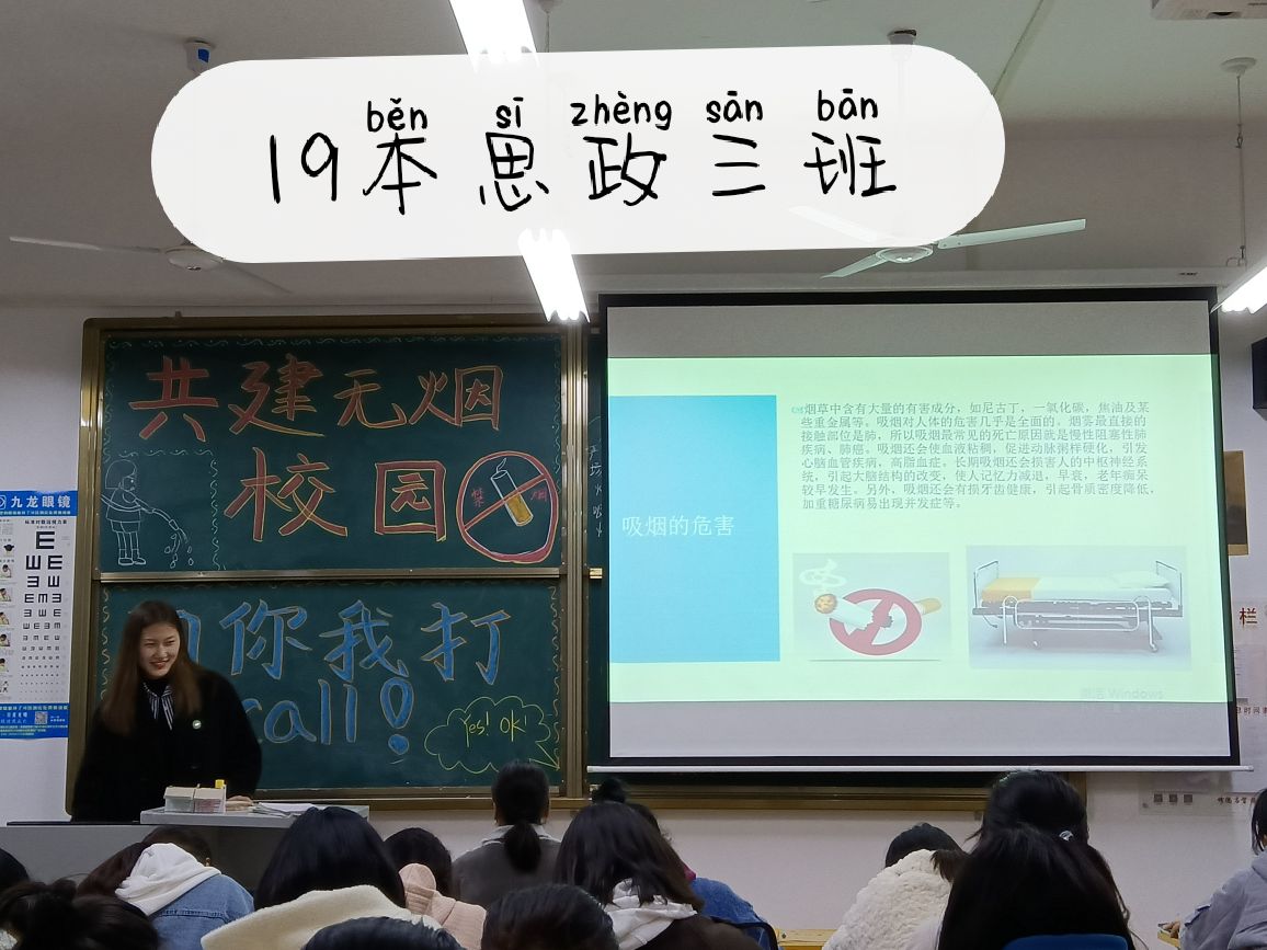 为落实我校下发的《太阳成tyc7111cc禁烟实施方案》和《太阳成tyc7111cc校园禁烟管理办法》,扎实推进《关于开展第十届文明礼貌月暨学雷锋志愿服务活动》的活动开展,加强文明校园、健康校园、无烟校园的建设,3月17日下午,tyc7111cc太阳成集团各班在辅导员和班主任老师的组织下,积极开展“共建无烟校园 为你我打call”主题班会。