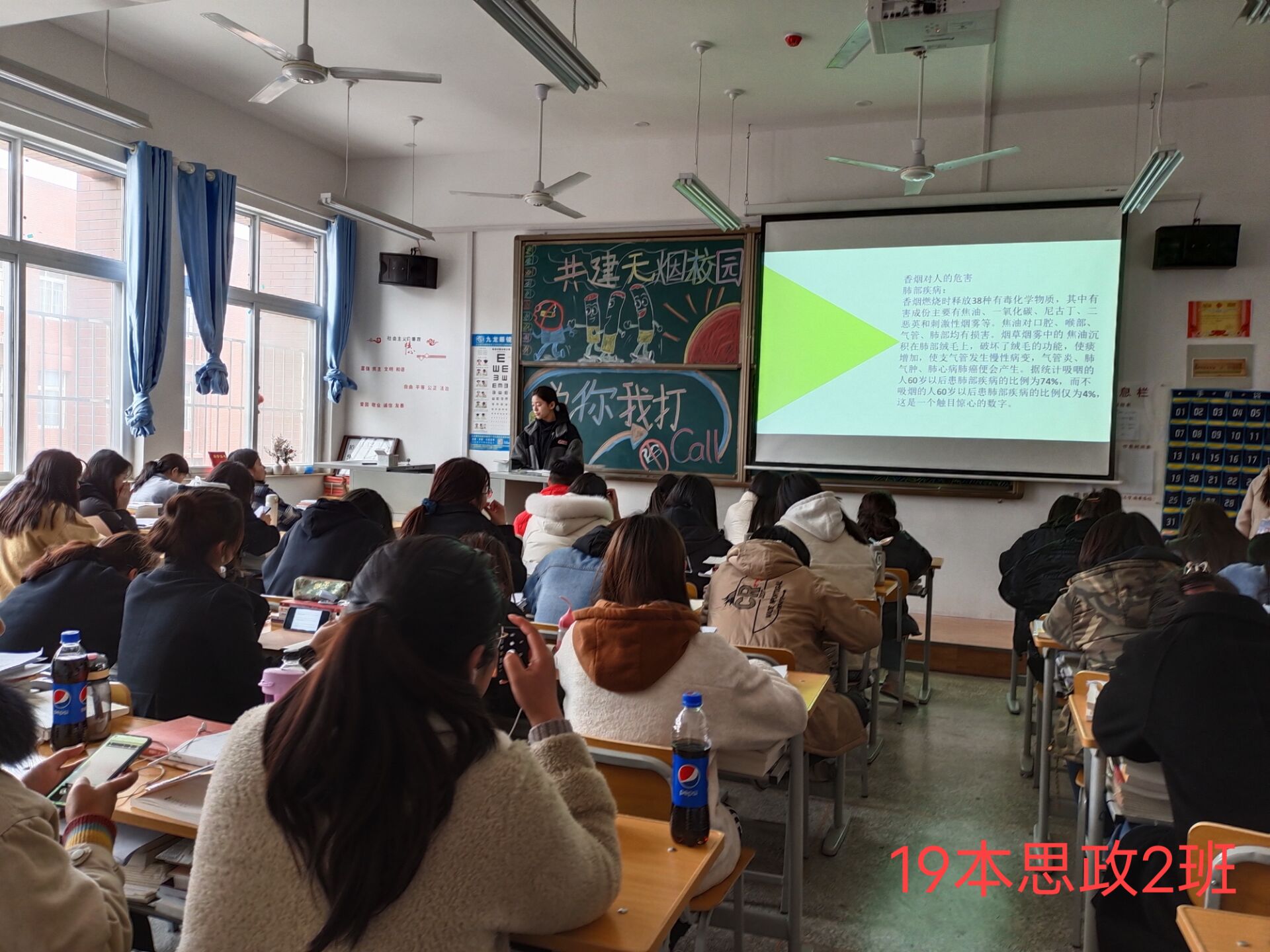 正值我校第十届文明礼貌月活动的开展,人人争当文明学生,提高文明意识。共创无烟校园就是向文明迈进的一个重要环节。同时通过此次班会,让同学们深刻的了解到了吸烟的所带来的危害,创造无烟校园,从我做起,营造健康良好的校园文化,为学校迎评促建工作添砖加瓦!