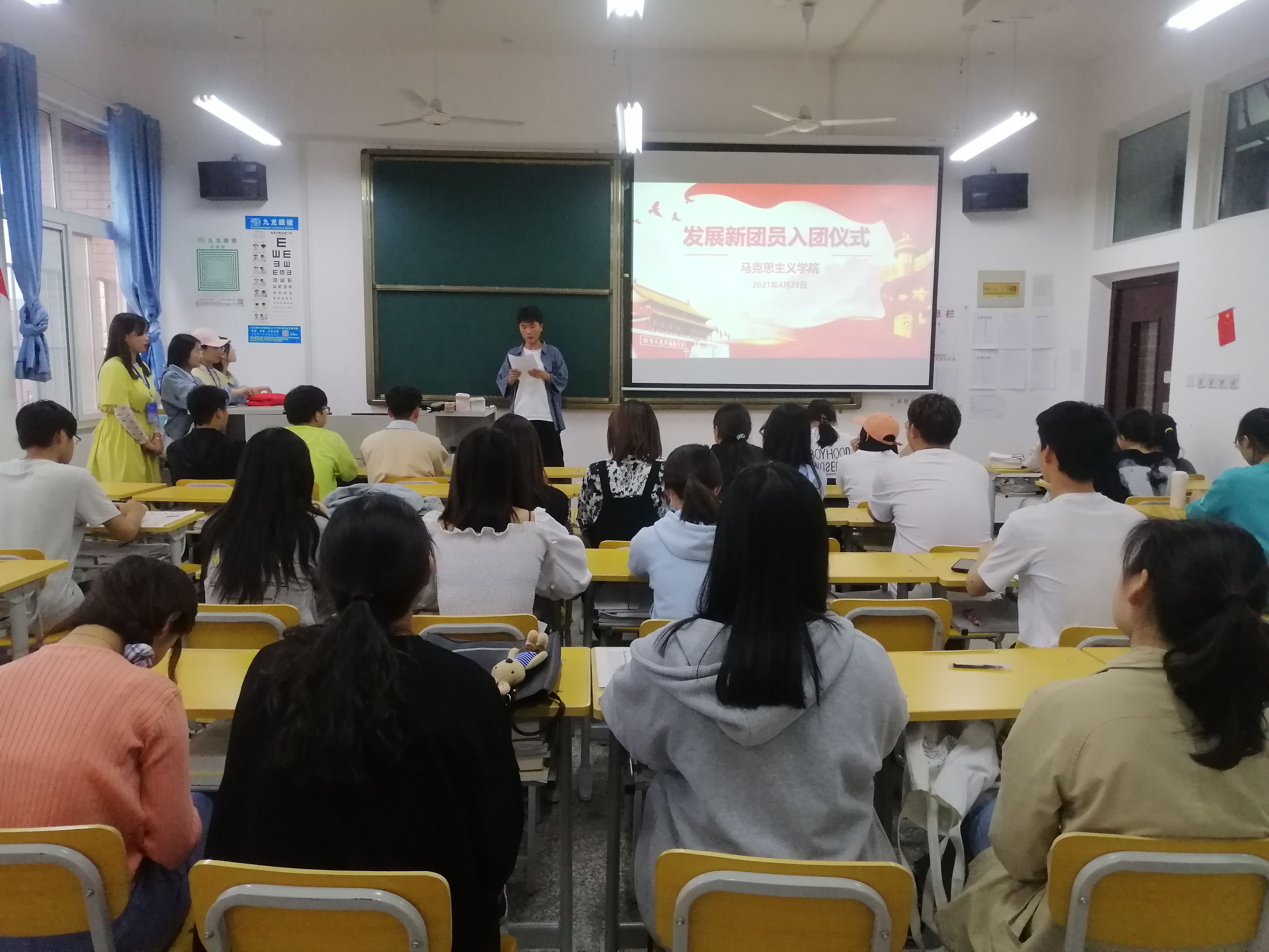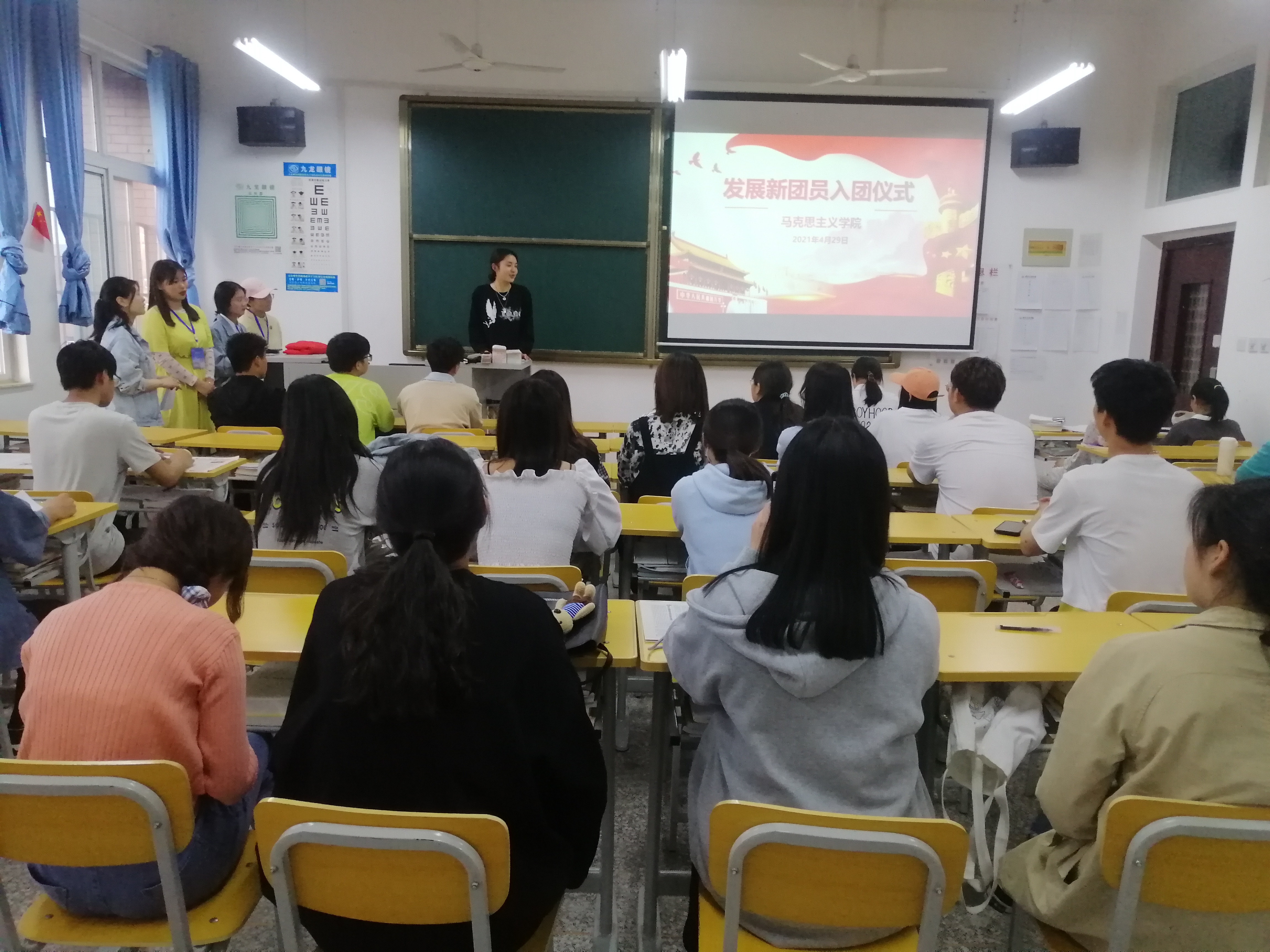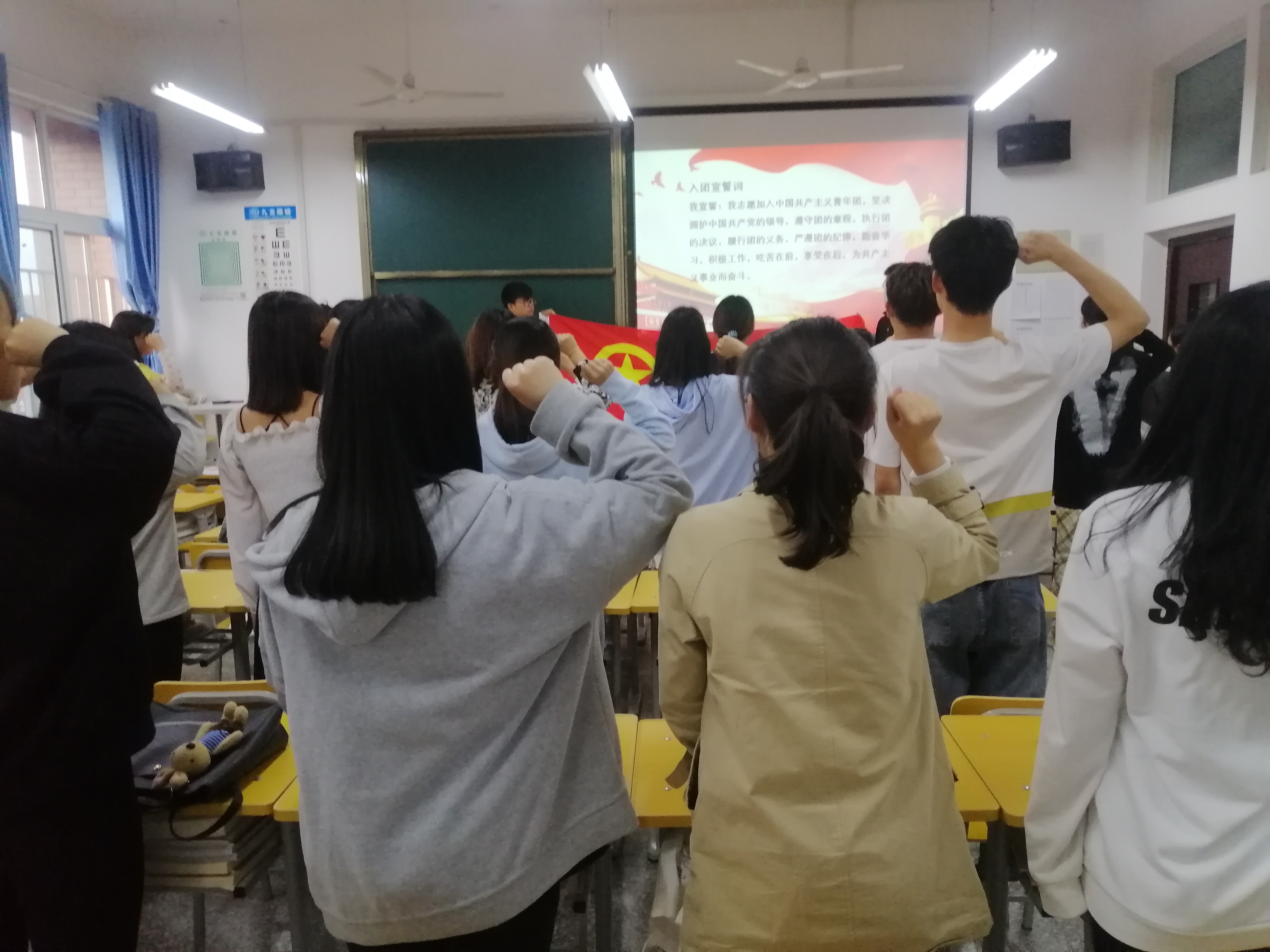 4月29日下午18时30分,tyc7111cc太阳成集团在东校区A504教室举行了第二届新团员入团宣誓仪式。仪式由马院学生书记王琳主持,第二期团校团员全体参加。