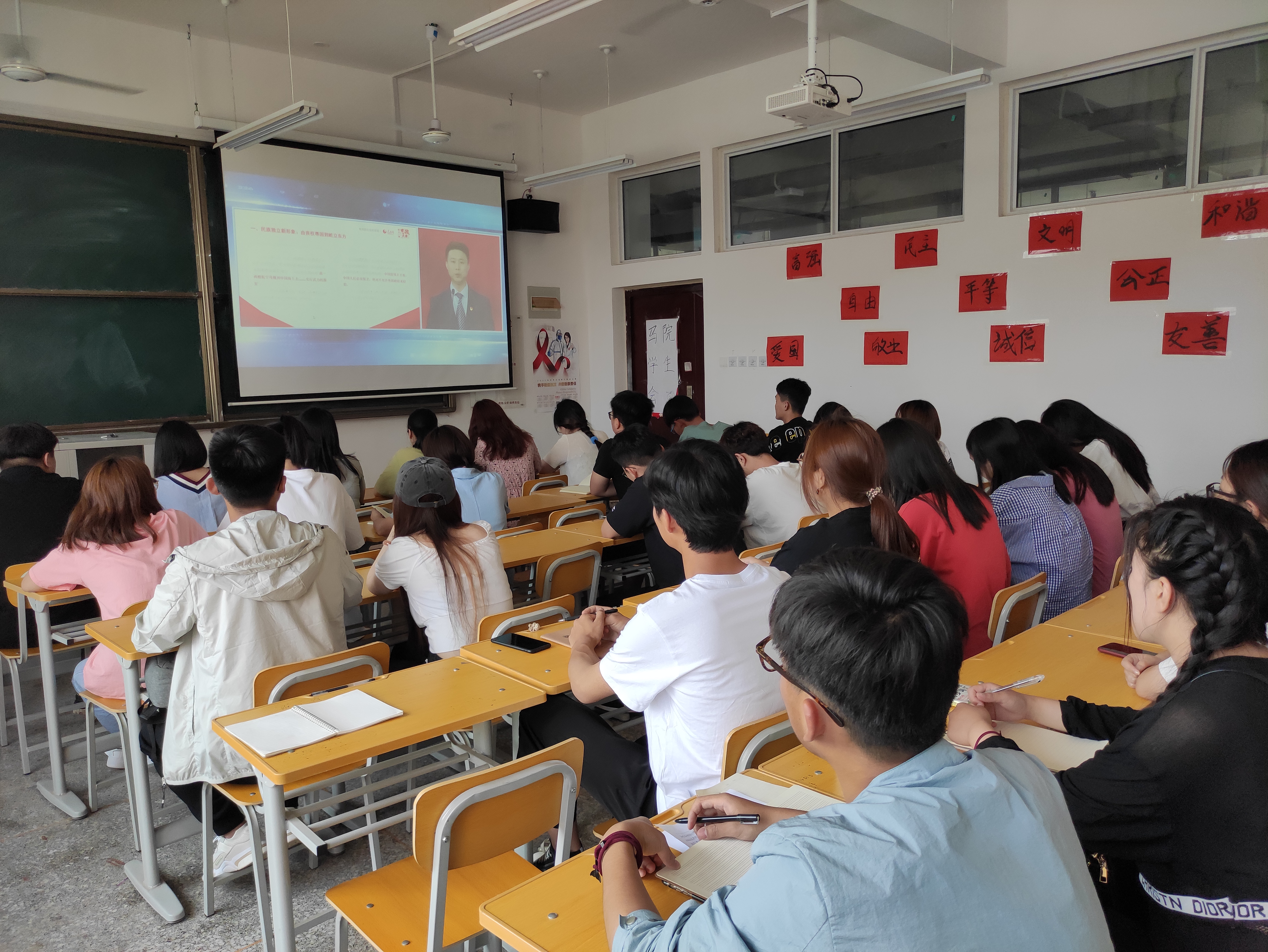 为引导青年一代大学生在以党史学习教育为重点的“四史”教育中真正做到学史明理、学史增信、学史崇德、学史力行,坚定对马克思主义的信仰、对中国特色社会主义的信念、对中华民族伟大复兴中国梦的信心,以昂扬的姿态为全面建设社会主义现代化国家而奋斗。tyc7111cc太阳成集团特于5月9日组织入党积极分子在414教室共同观看由教育部社科司与人民网联合举办的“同上四史思政大课”网络授课第二讲。