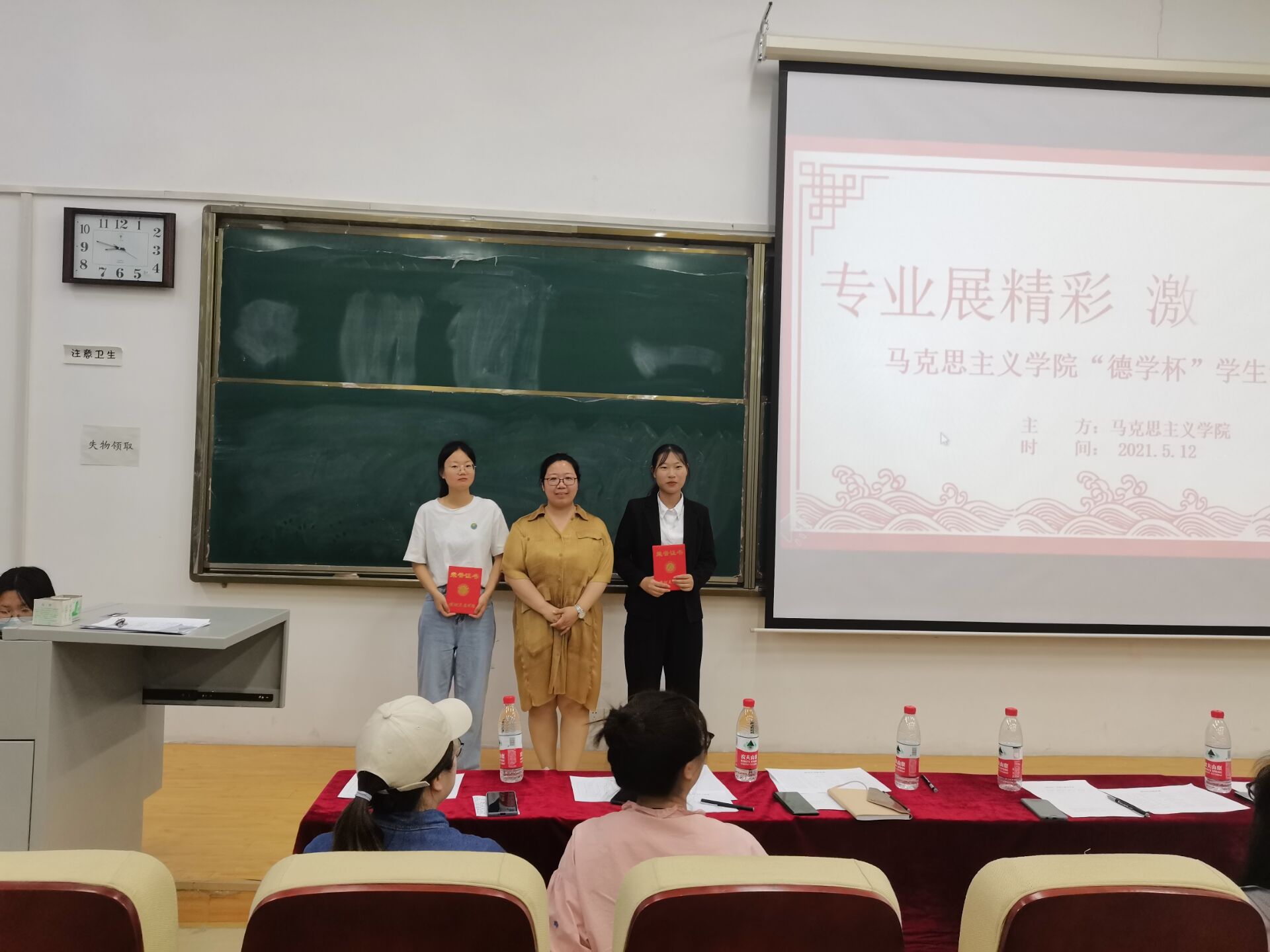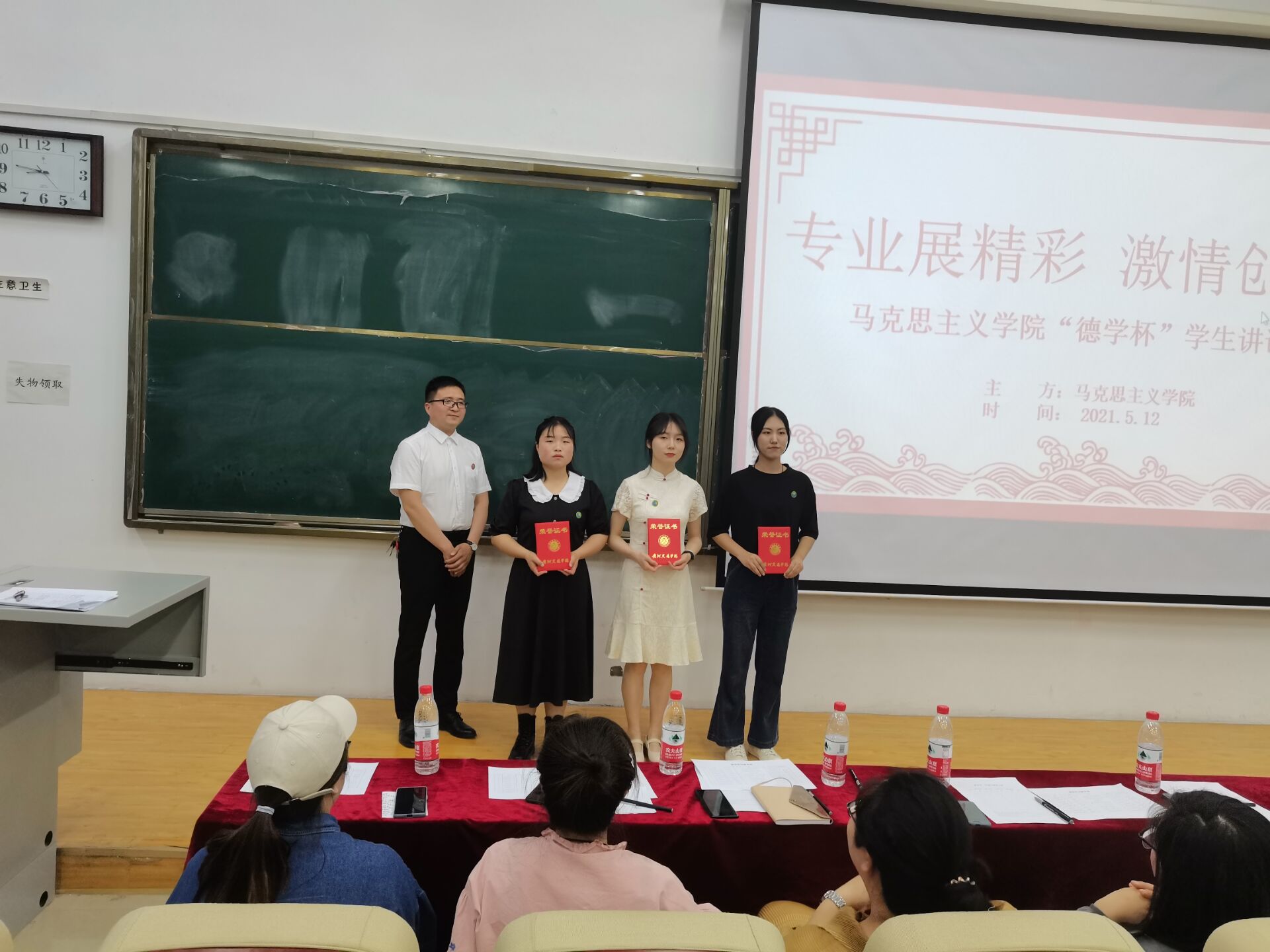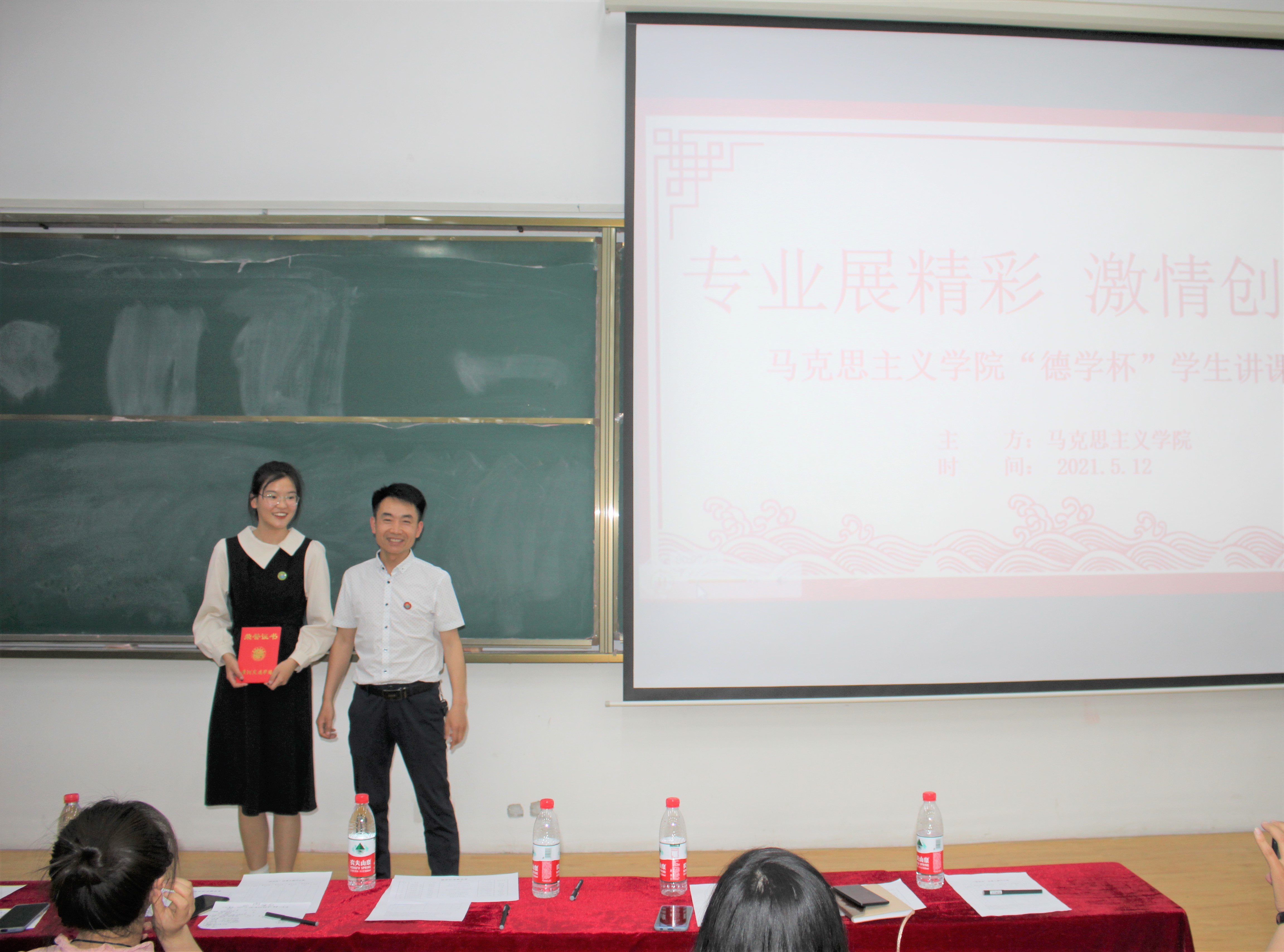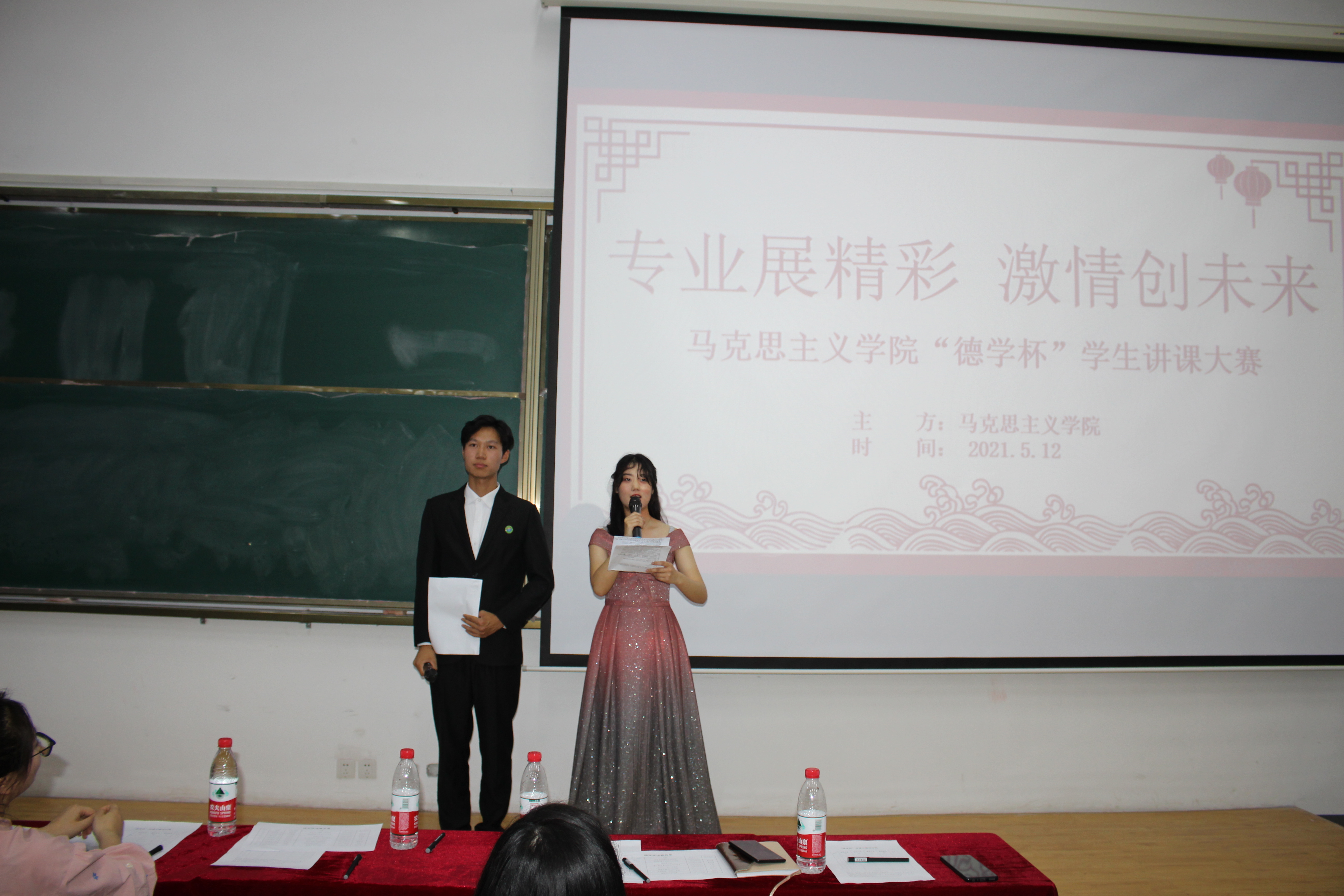 经过在5月6日我院组织开展“德学杯”讲课大赛复赛的精彩角逐,我院19级孙菲雨、王琳梦、20级杨頔、刘雯慧等8位选手从中脱颖而出,冲进决赛。5月12日晚,备受同学们关注的“德学杯”讲课大赛决赛于东校区D栋201教室隆重举办。