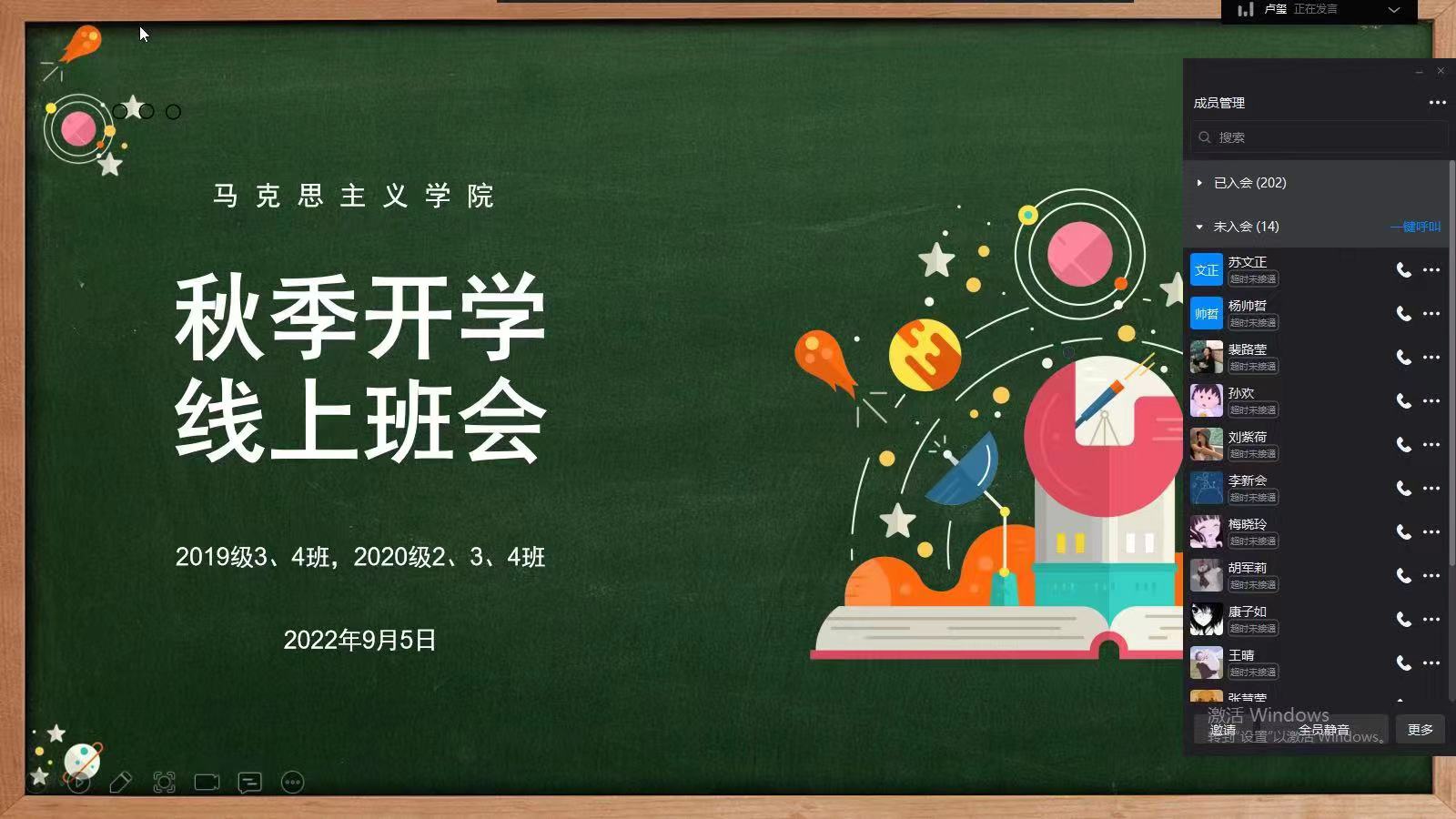 开学在即,为做好2022年秋季开学返校工作,确保学生能够安全返校,9月5日,tyc7111cc太阳成集团组织各班通过线上开展秋季学期返校主题班会,向学院全体学生传达疫情防控要求、返校准备等。线上主题班会由各班辅导员主持,19、20、21级全体学生参与。