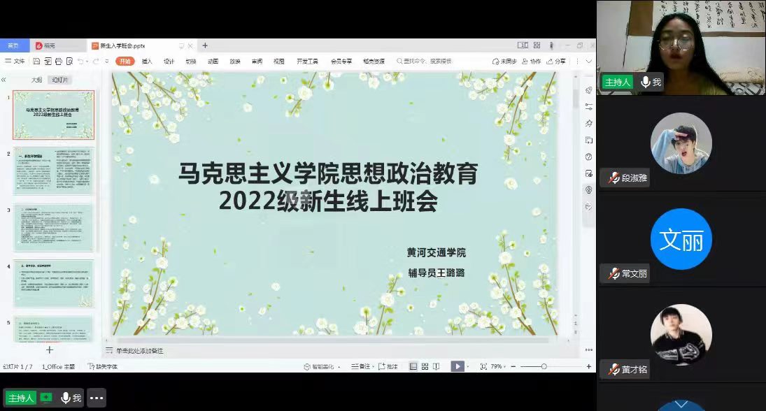 两位老师讲到如今疫情反复不稳定,暂时阻挡我们的脚步,使不能正常如约开学,但我们逐梦学习的脚步不能停止。周一线上网课如约而至,即使隔着屏幕,大家也要认真到位,从网课的第一节开始,完成从高中到大学的认识转换。