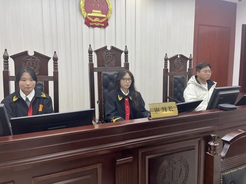 此次模拟法庭活动小组由8人组成,分别担任审判长、审判员、书记员、公诉人、被告人等角色。在模拟法庭上,学生们身着法官袍,严格按照法律程序进行审判。从法庭调查、举证质证到法庭辩论,再到最后的宣判,整个过程严肃而有序。
