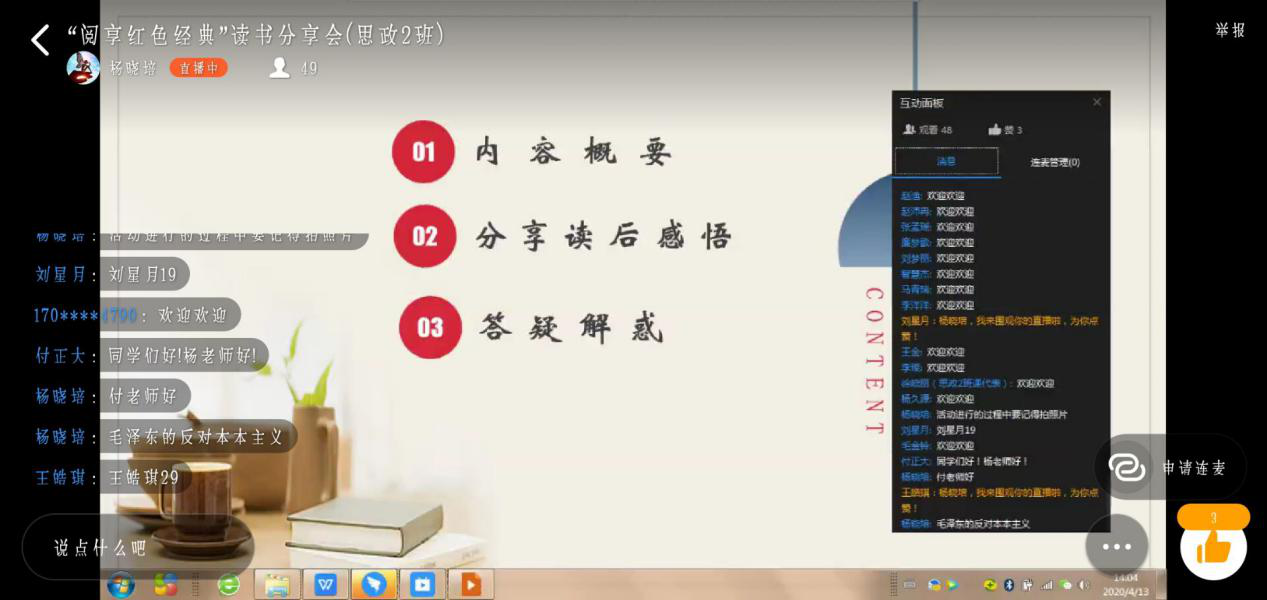 (此图是学生连麦分享感触时的截图)