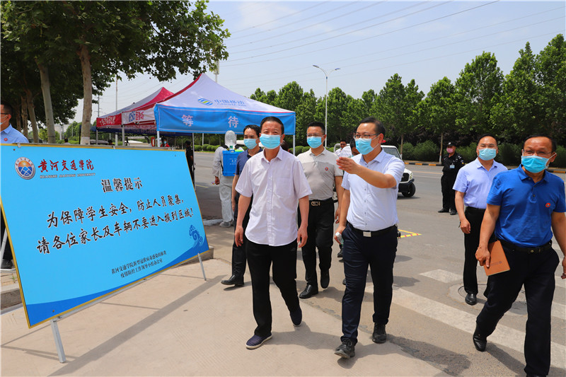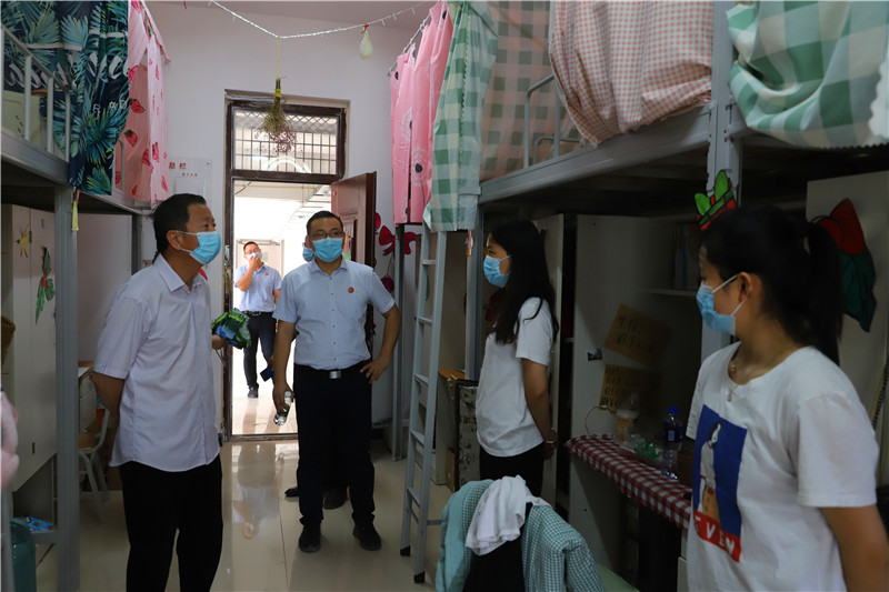 在保卫处校园监控中心,校领导了解了学生实时返校情况和各种安全保卫措施;在学生食堂,校领导了解了食堂的消毒清洁工作、菜品供应情况和学生分时就餐安排;在学生报到点,校领导了解了第一批学生返校情况,以及各学院为学生准备的防疫物资情况。