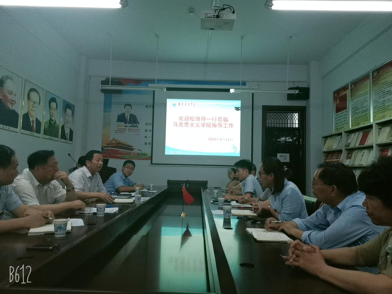 王校长在讲话中重点提到:马院地位特殊,要巩固和加强马院的地位和作用;搞好定位,转变观念和意识,加强立德树人教育;特别指出马院是评估专家考察的重点,要加强教学改革、考试方法改革、学术交流等;要积极参加校园文化建设;加强队伍建设、师德师风建设等。