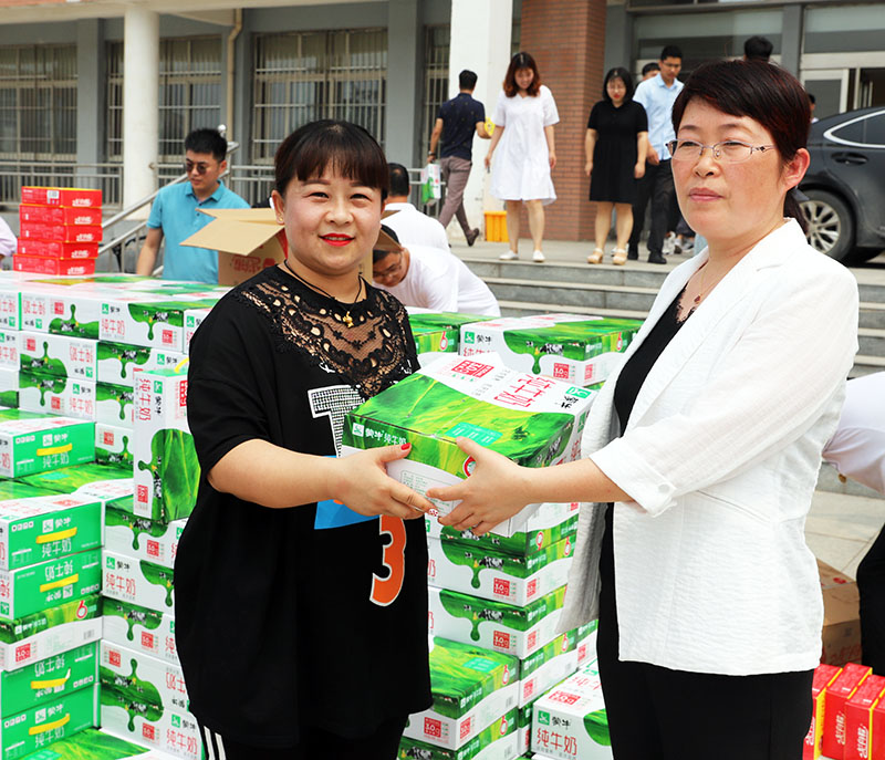 6月24日上午一早,学校的行政楼前国旗广场上整整齐齐的摆满了节日慰问品,各分工会前来领取节日福利的老师们个个喜气洋洋,国旗广场成了一片欢乐的海洋,工会主席李琰霞也来到现场为教职工们发放福利。