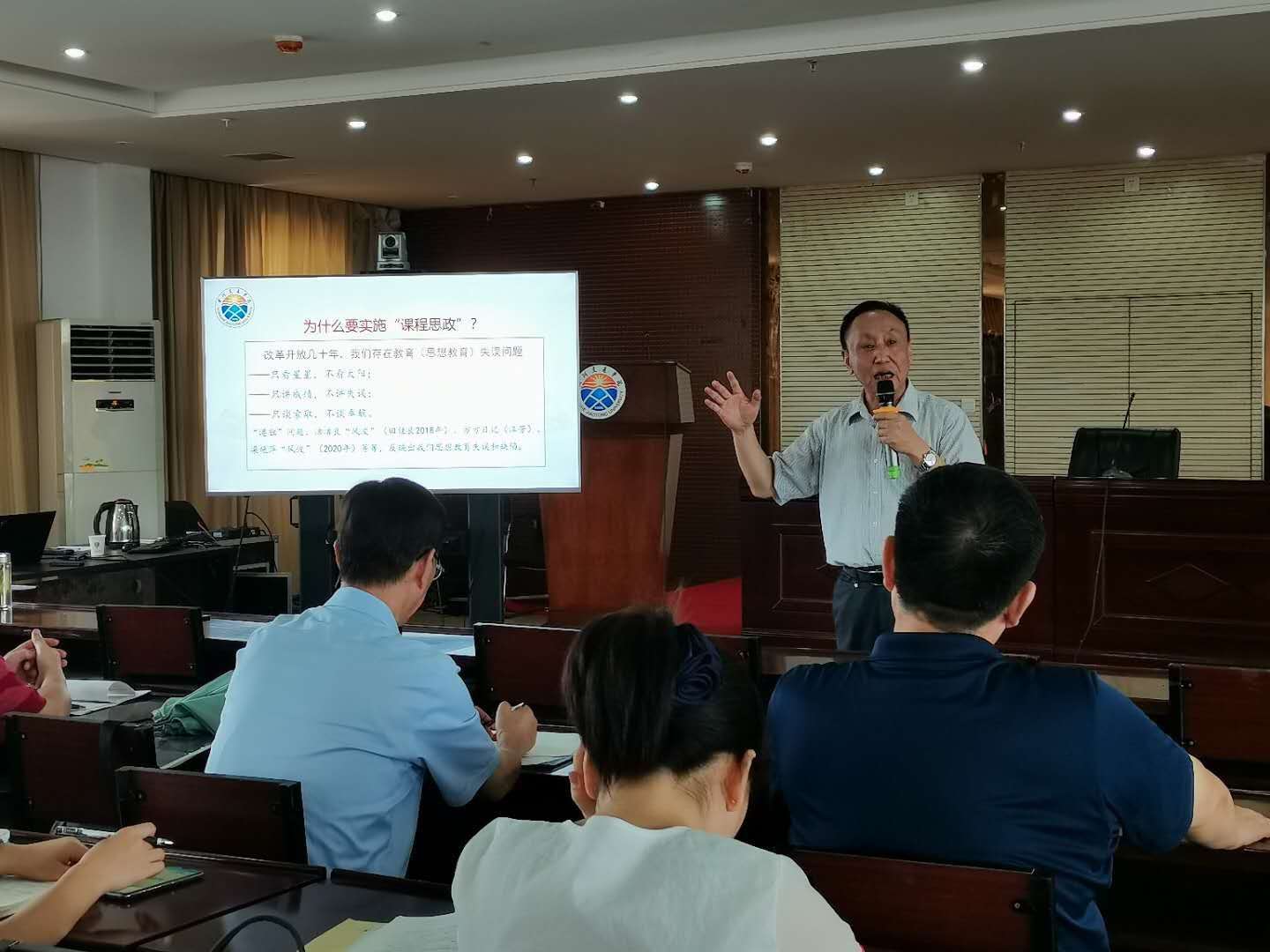 7月22日,基础教学部在行政楼七楼学术报告厅开展暑期教师培训及“课堂教学大练兵”活动集中培训第五讲——探究课程思政育人新径。主讲人为tyc7111cc太阳成集团院长易宏军教授。