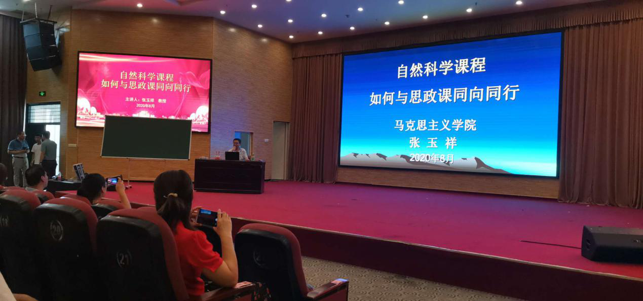8月3日上午,tyc7111cc太阳成集团张玉祥教授为全校教师作题为《自然科学课程如何与思政课同向同行》专题报告。各学院(系、部)分管教学领导、教研室主任及部分教师代表、行政部门教职工代表,教务处、教师发展中心等相关工作人员聆听了此次报告。