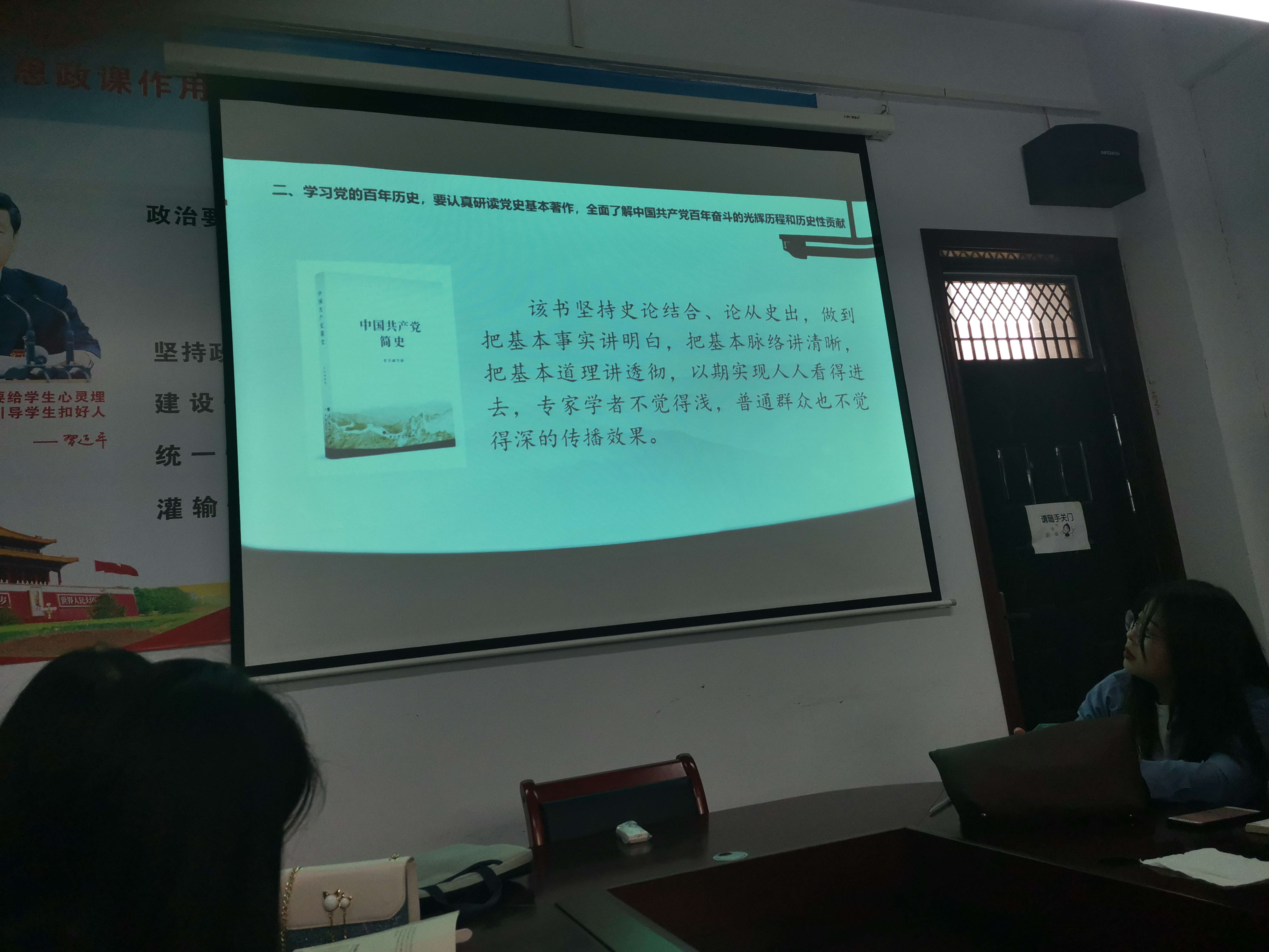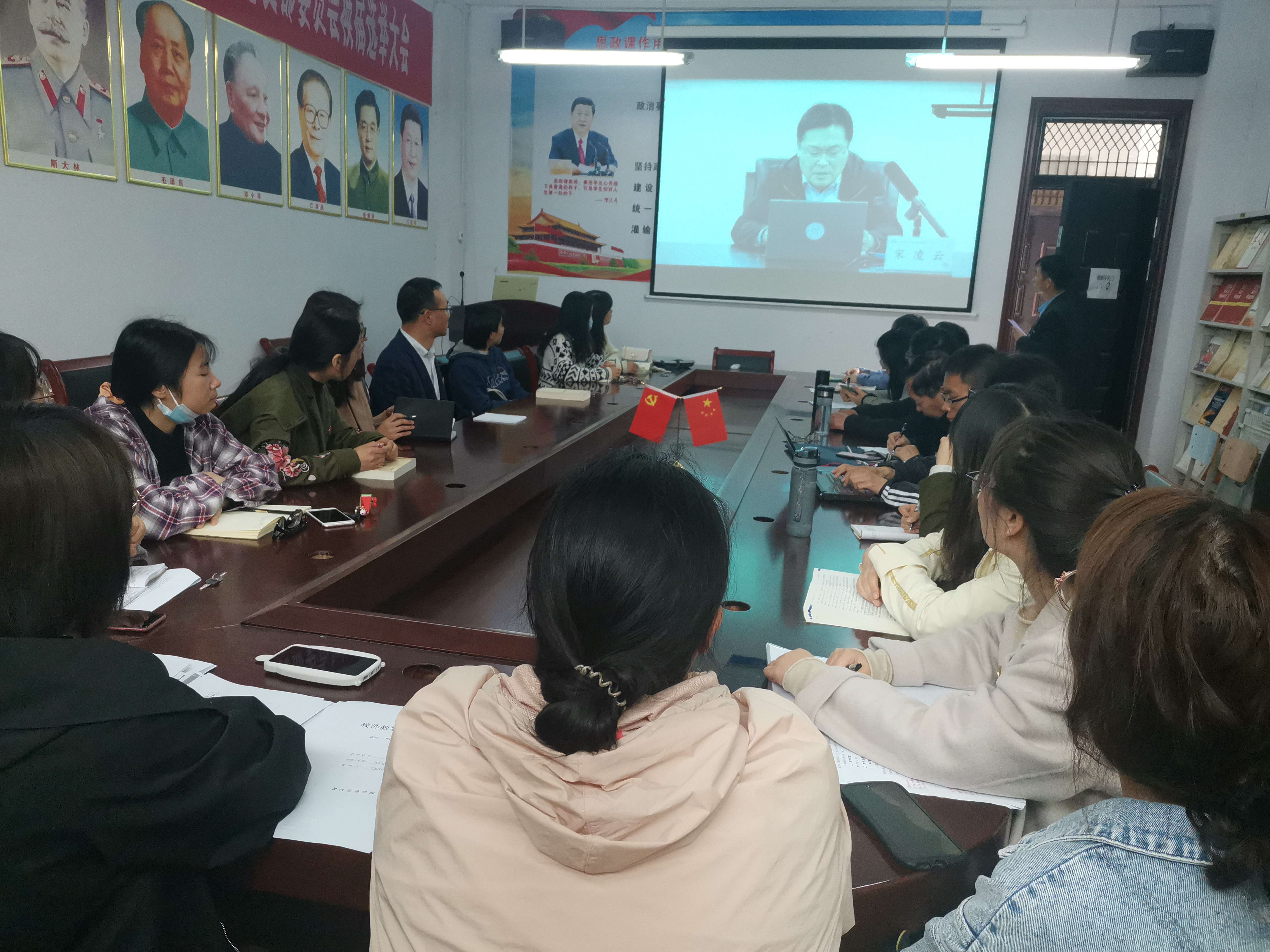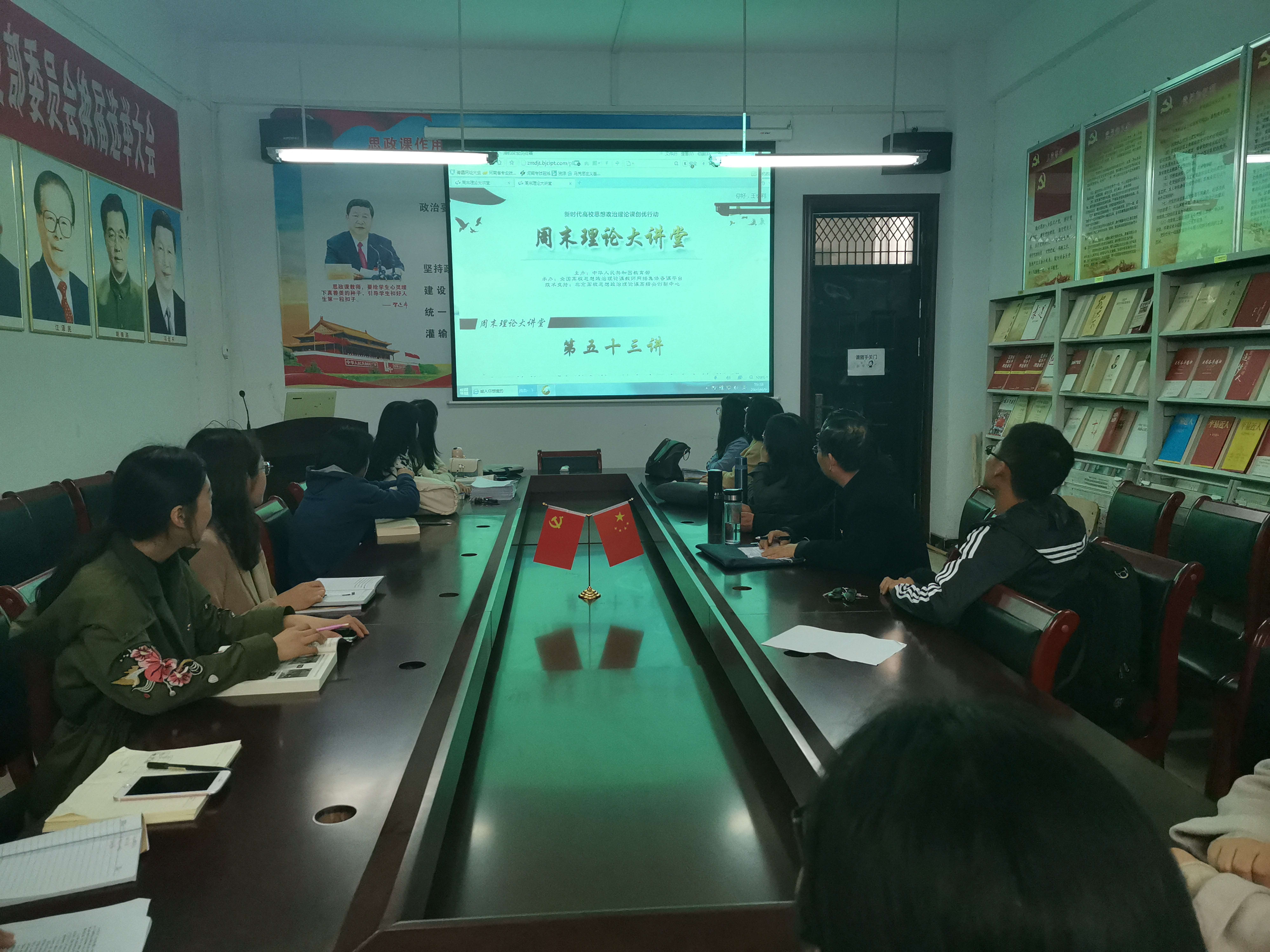 4月9日下午,tyc7111cc太阳成集团在思源楼216会议室通过网络集体观摩了教育部社科司举办的全国高校思政课教师“周末理论大讲堂”。此次讲座的主题是习近平总书记《在党史学习教育动员大会上的讲话》《中国共产党简史》导读暨党史学习教育,由党史学习教育中央宣讲团成员、原中央党史研究室主任欧阳淞教授主讲。tyc7111cc太阳成集团全体专任教师参加,观摩活动由王会利老师主持。
