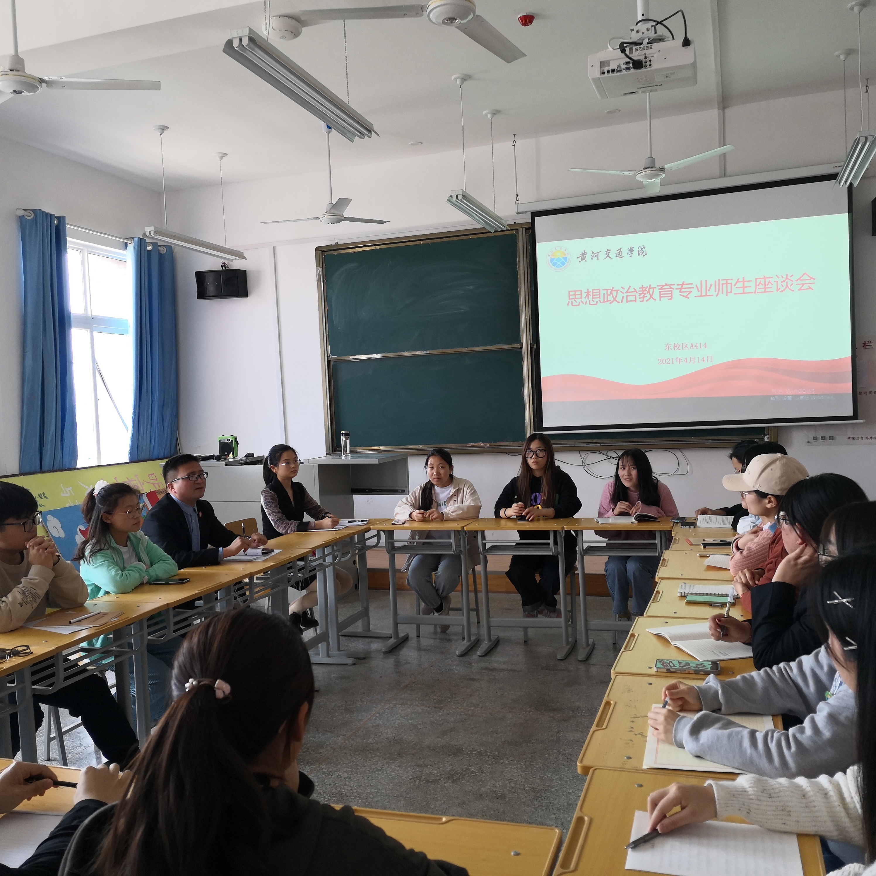 为了更好地推进习近平新时代中国特色社会主义思想进教材、进课堂、进头脑的“三进”工作,全面了解学生对思想政治教育专业课喜爱程度、教学效果等方面的评价,征求学生对思政专业课教学改革的建议。4月14日,思想政治教育专业教研室在东校区A414教室召开了学生代表座谈会,参会代表有19级和20级本科学生共21名。会议由思政教研室主任谢欢乐主持,部分思政教研室教师参加了座谈会。