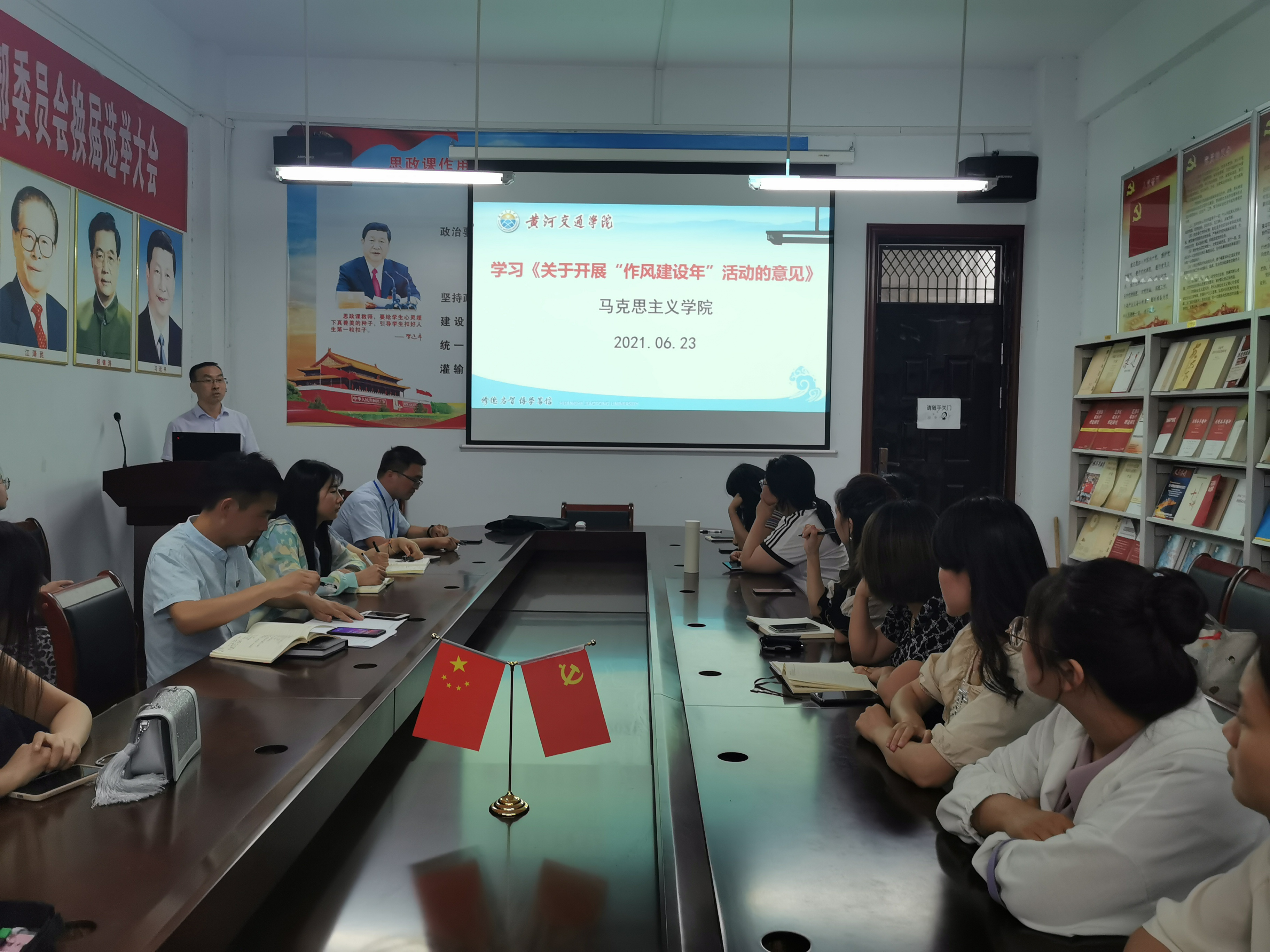 会上,马克思主义学院教师党支部书记刘建东老师对太阳成tyc7111cc《关于开展“作风建设年”活动的意见》制度进行详细解读,带领教师进行学习。