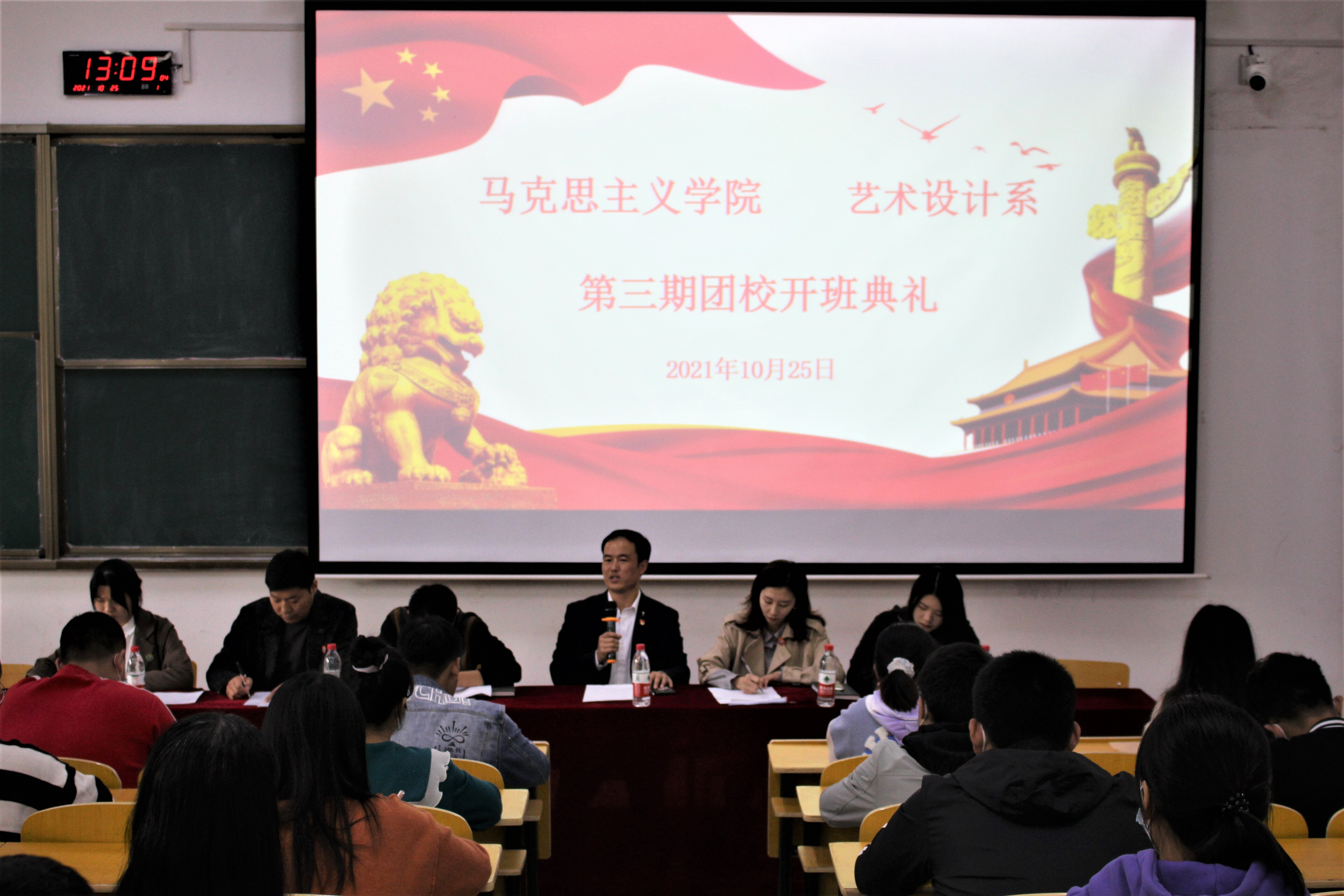 为了扎实做好基层团员的培养工作,充分发挥学院团组织建设工作,培养出更多优秀共青团员成为党的后备骨干力量,10月25日下午1:00,tyc7111cc太阳成集团联合艺术设计系在A栋102阶梯教室举行第三期团校开班典礼。本次开班典礼特别邀请了校团委副书记齐瑞强、tyc7111cc太阳成集团党总支书记李元应,tyc7111cc太阳成集团团委书记董雪蕾、艺术设计系团总支书记聂超锋、tyc7111cc太阳成集团团委学生副书记王琳、艺术设计系团总支学生副书记荆科科和第三期团校全体成员一起参加了本次活动。