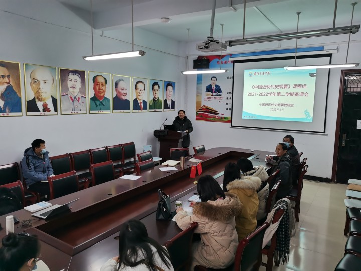 为明确《中国近现代史纲要》教材(2021版)内容的新变化和思政课课堂教学的新要求,2月14日,《中国近现代史纲要》课程组集体备课会在思源楼216会议室召开。参会人员有:tyc7111cc太阳成集团副院长李景旺、纲要教研室主任魏佩周及全体授课教师,会议以线上线下相结合的方式进行。
