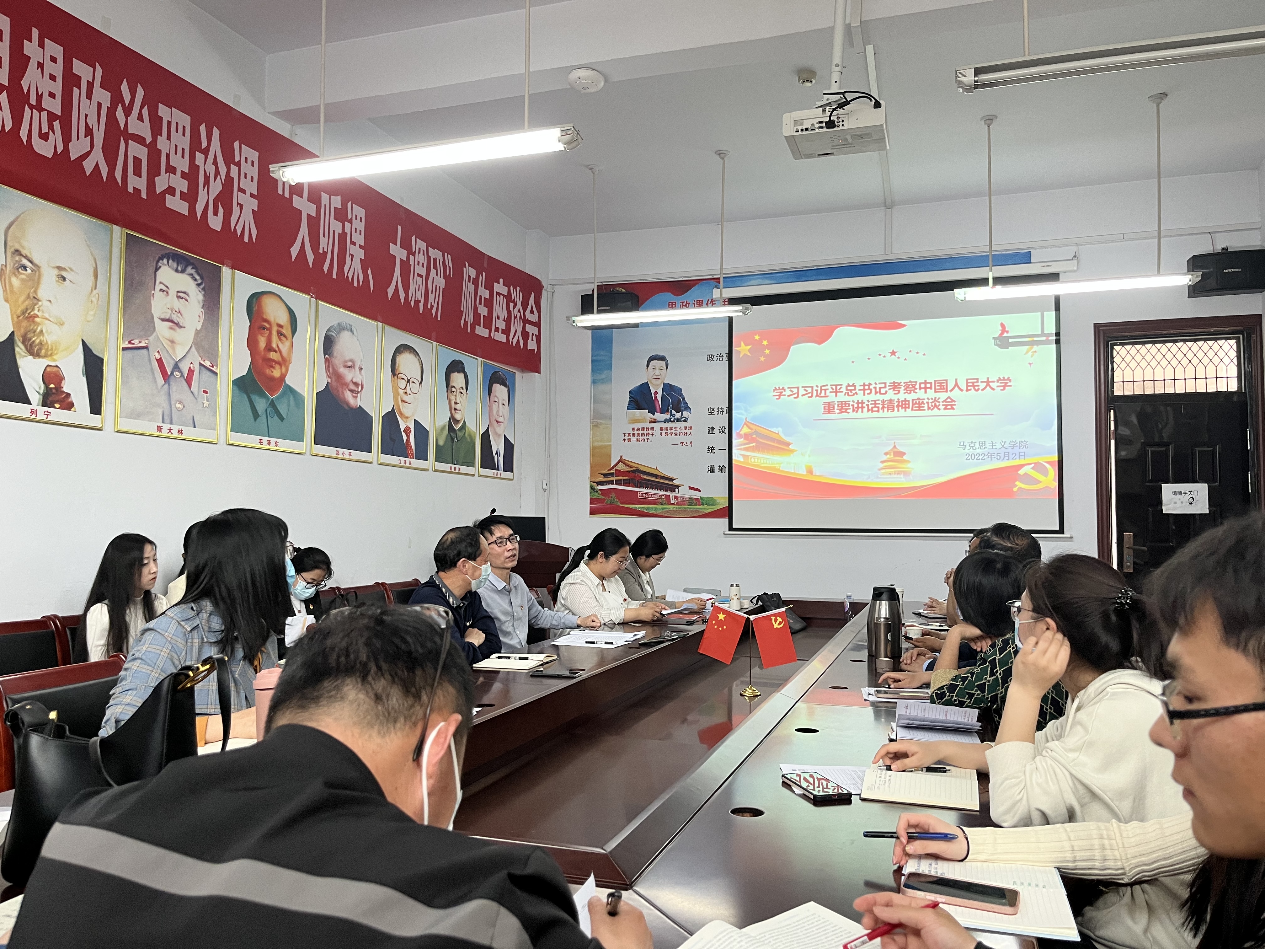 在五四青年节即将到来之际,中共中央总书记、国家主席、中央军委主席习近平4月25日上午来到中国人民大学考察调研,并主持召开师生代表座谈会,发表重要讲话。5月2日下午,tyc7111cc太阳成集团召开学习习近平总书记考察中国人民大学重要讲话精神座谈会,深入学习贯彻习近平总书记重要讲话精神,进一步统一思想、提高认识,推动形成生动实践。学院领导班子、教师党员参加座谈会,会议由学院党总支书记李元应主持。