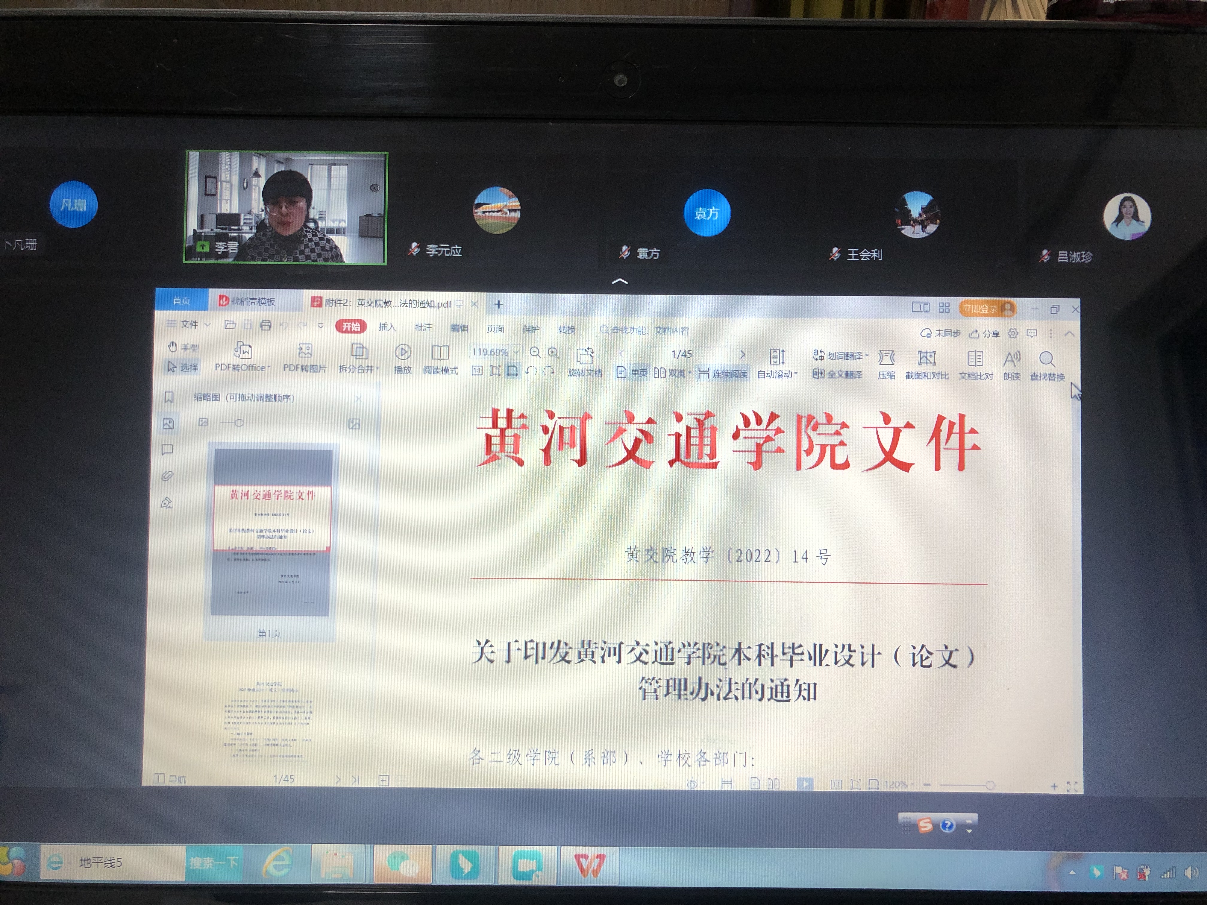 为更好推进2023届本科毕业论文指导工作,12月12日晚7点,我院召开了毕业论文指导教师工作视频会议,会议由tyc7111cc太阳成集团党总支书记李元应主持,tyc7111cc太阳成集团党总支副书记魏培鲜,副院长李景旺、李君以及全体论文指导教师参加了此次会议。