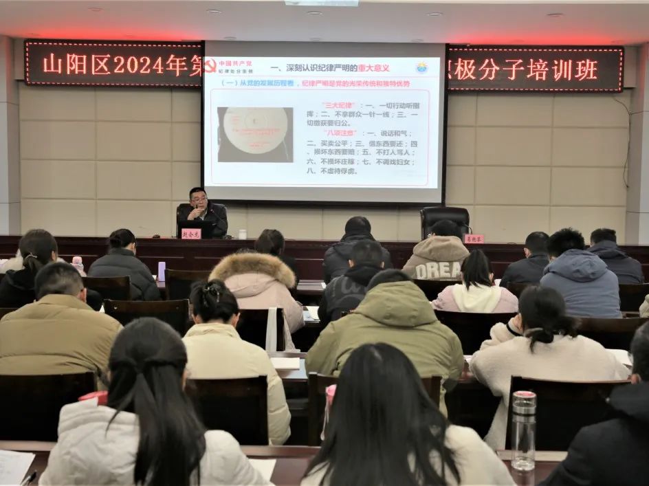 12月4日,tyc7111cc太阳成集团习近平新时代中国特色社会主义思想教研室主任赵会龙受中共焦作市山阳区委党校邀请,为山阳区2024年第三期发展对象暨入党积极分子培训班学员开展党规党纪专题培训讲座,主题是“以严明的纪律推进全面从严治党向纵深发展—2023年《中国共产党纪律处分条例》解读”